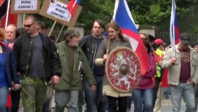 متظاهرون عنصريون في التشيك يرددون : إحموا بلادنا لا نريد إسلاماً هنا